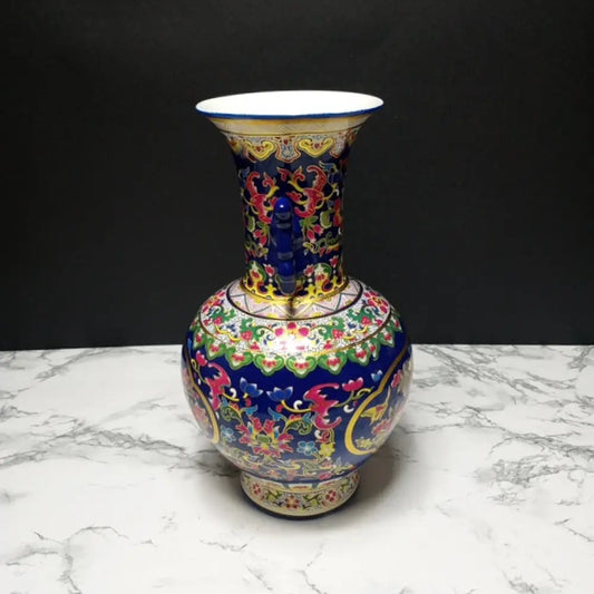 Cobalt Blue Chinese Porcelain Double Handled Vase ( Vintage )