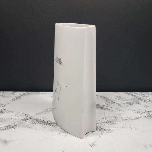 Floral Bag Vase Artist Signed Porcelain Vintage