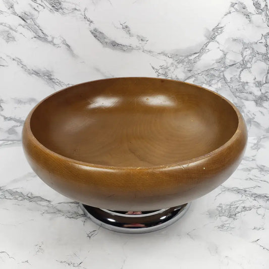 Hellerware Wood Bowl Chrome Pedestal Vintage