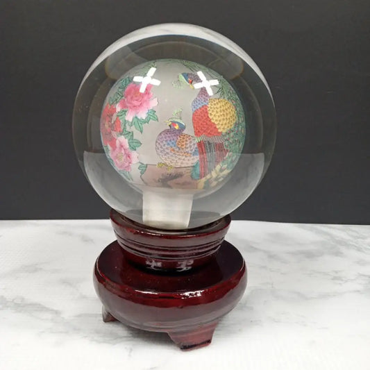 Crystal Ball Reverse Painted Peacock Stand Vintage