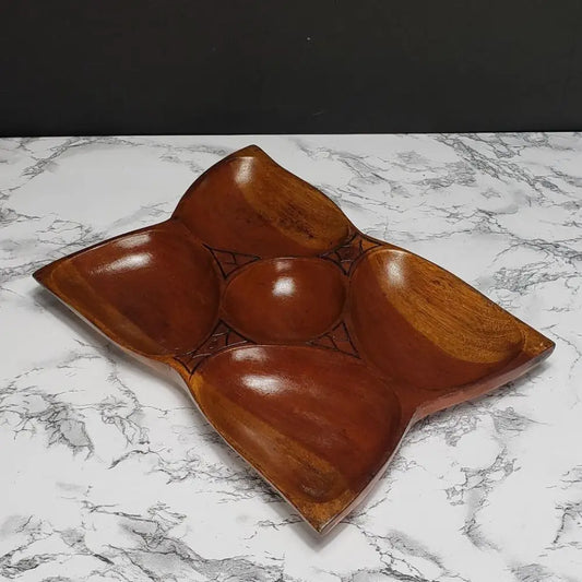 Solid Wood Hand Carved 5 Compartment Tray Vintage
