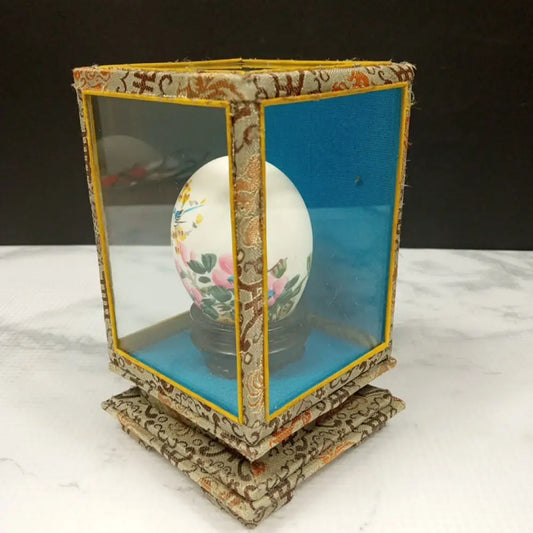 Egg Shell Signed Hand Painted Glass Case Vintage