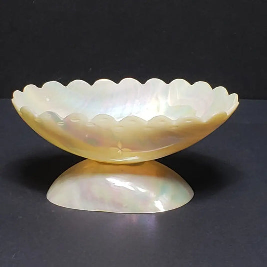 Handmade Mother Of Pearl Engraved Pedestal Trinket Dish Vintage
