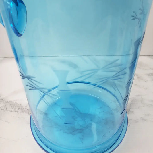 Rare Blown Hand Cut Glass Pitcher Set West Virginia Glass