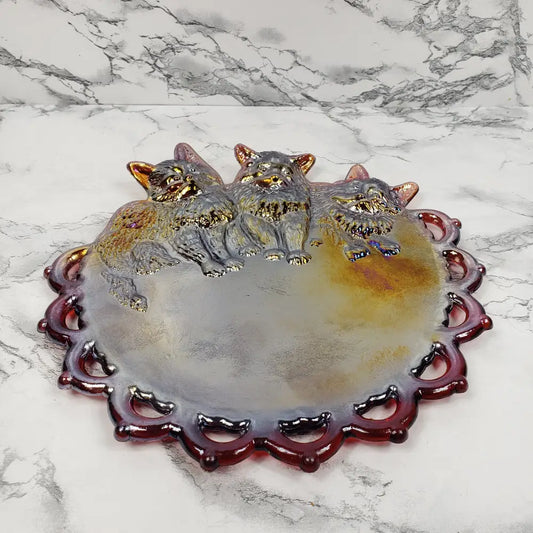 Westmoreland Kitten Vanity Tray Carnival Amberina Glass Vintage