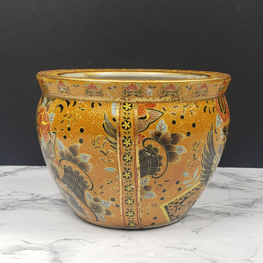Asian Hand Painted Planter Pot Vintage