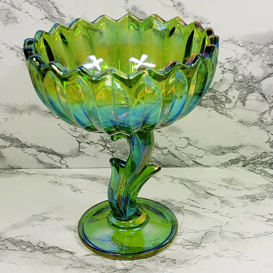 Carnival Glass Lotus Blossom Compote Indiana Vintage