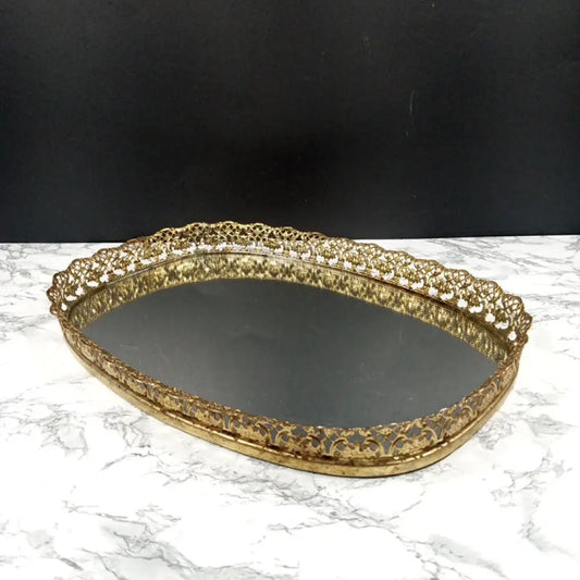 Hollywood Regency Mirrored Filigree Vanity Tray Mid Century
