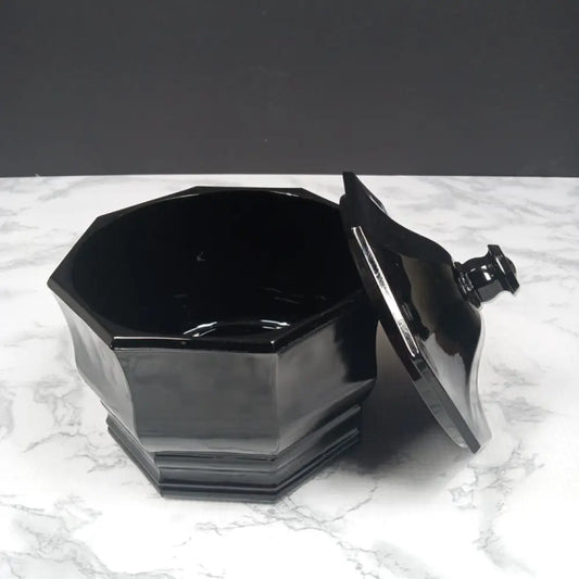 1930's Art Deco Black Amethyst Glass Lidded Dish ( Vintage )