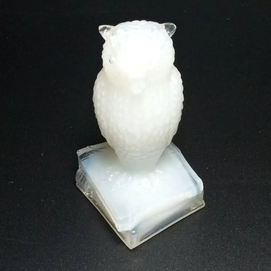 Degenhart Paperweight Wise Owl UV Reactive White Glass ( Vintage )