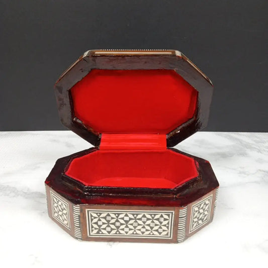 Wood Trinket Box Mother Of Pearl Inlaid ( Vintage )