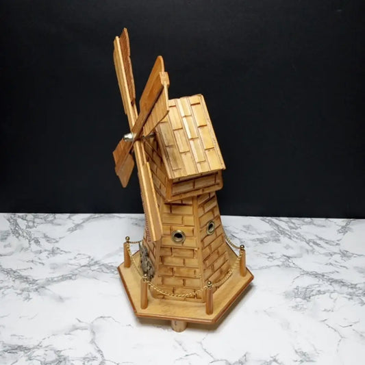 Handmade Bamboo Windmill Music Box Coin Bank ( Vintage )