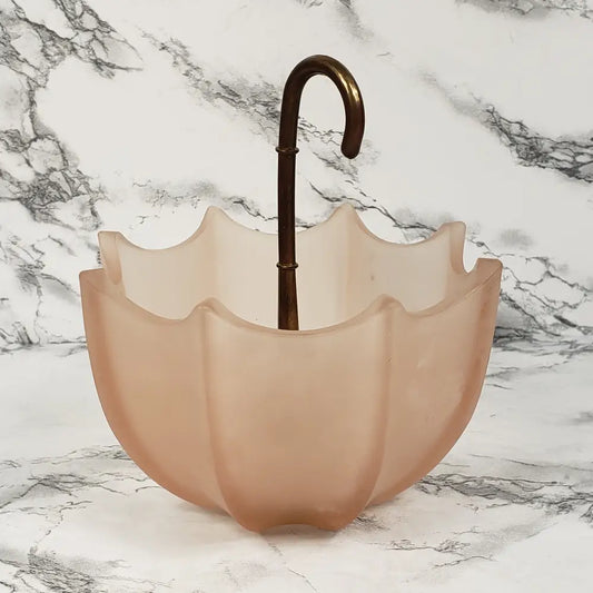 Fenton Pink Frosted Glass Umbrella Candy Dish Vintage