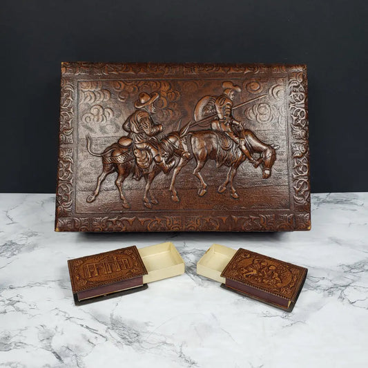 Humidor Box Embossed Don Quixote Madrid Spain Vintage