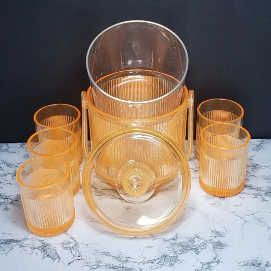 8 Piece Lucite Ice Bucket and Tumbler Set Vintage