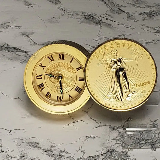 Bulova Gold Coin Stack Desk Alarm Clock Vintage