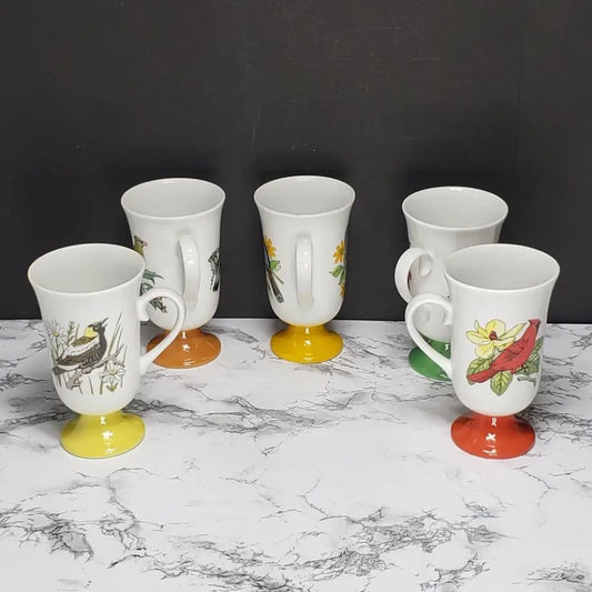 Set Of 5 Fred Roberts Birds Irish Coffee Cups Vintage