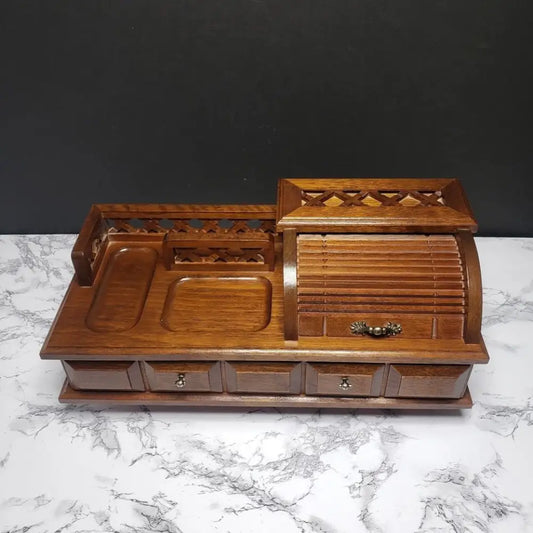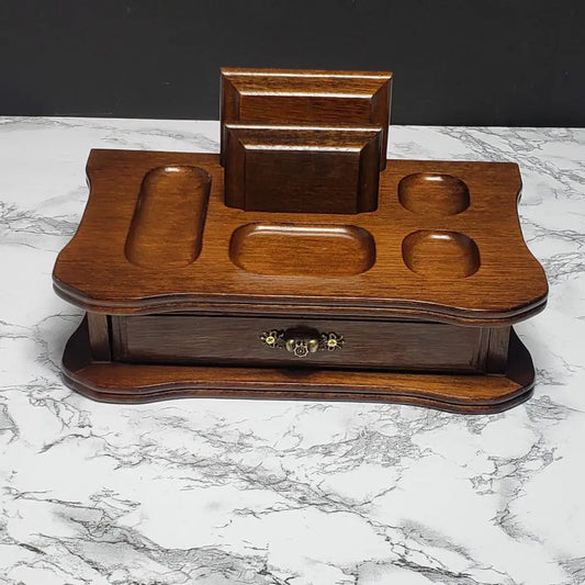 Solid Wood Mens Dresser Valet Jewelry Box With Roll Top Vintage