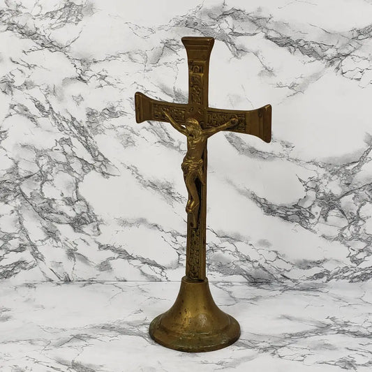 Solid Brass Large Altar Crucifix Vintage