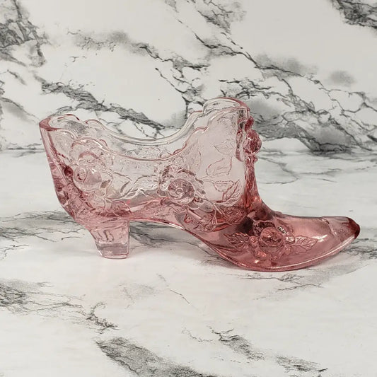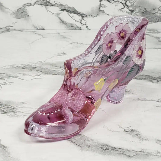Fenton Glass Shoe Hand Painted Artist Signed Vintage