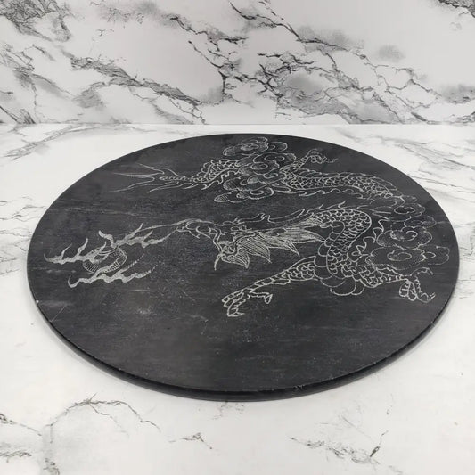 Hand Engraved Stone Dragon Plant Trivet Vintage