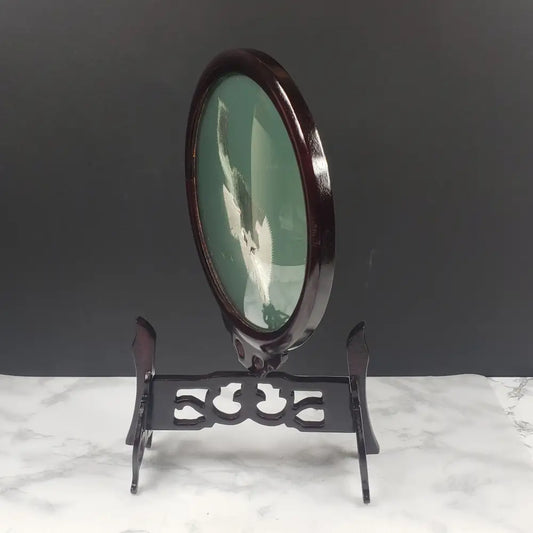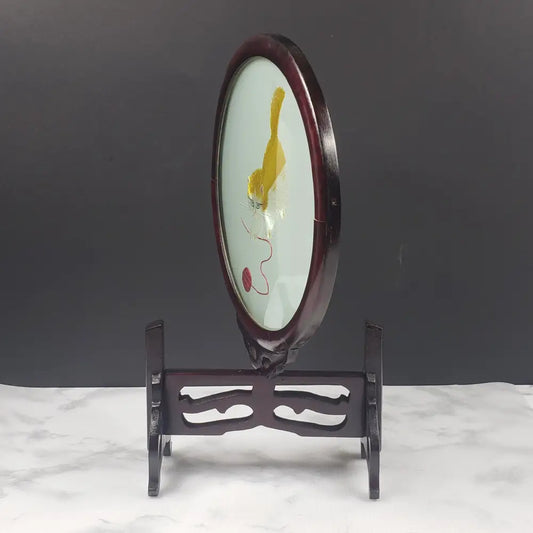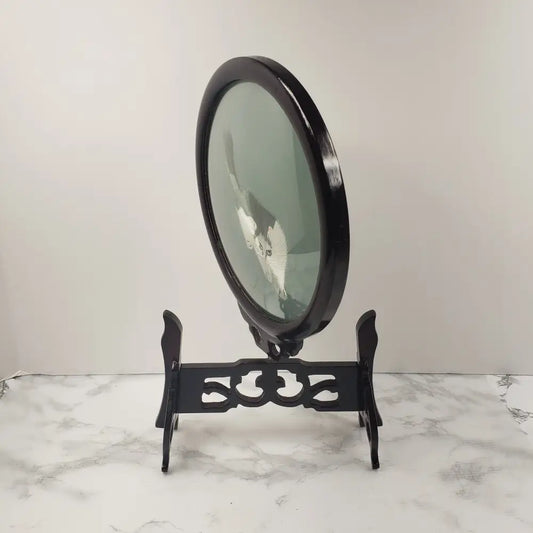 Oriental Silk Embroidered Cats Mantis Glass Wood Vintage