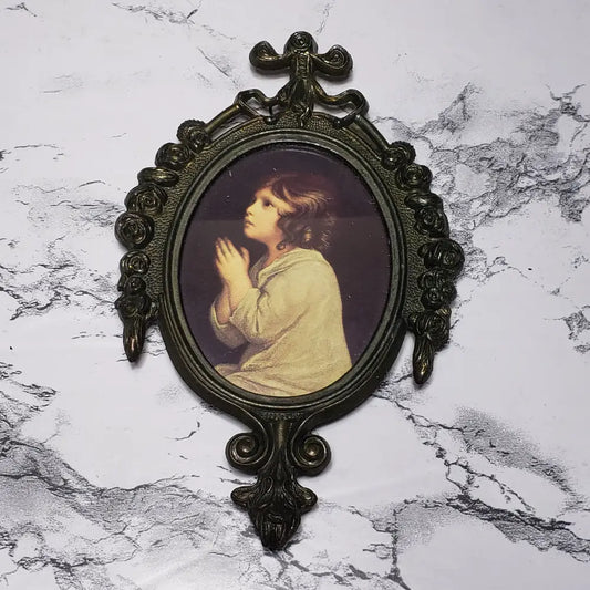 Lithograph Jesus Garden Gethsemane in Barbola Frame Antique