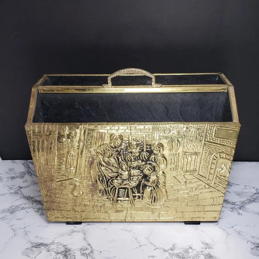 Peerage Embossed Brass Over Wood Magazine Rack Mid Century