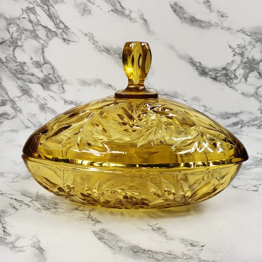 Hazel Atlas Honey Glass Triangle Lidded Dish Vintage