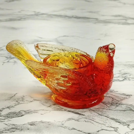 Degenhart Glass Bird & Berry Trinket Paperweight Open Salt Vtg