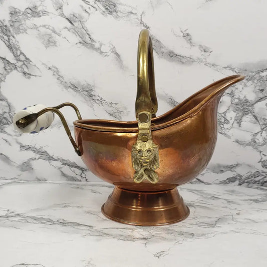 Copper and Brass Delft Handle Coal Bucket Planter Pot Vintage
