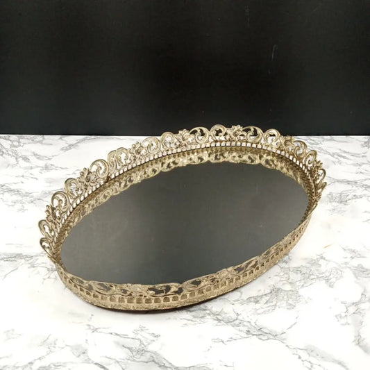 Hollywood Regency Oval Mirrored Vanity Tray Mid Century
