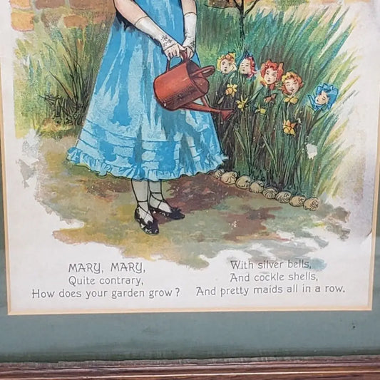 Mary Mary Nursery Rhyme Framed Matted Book Page Vintage
