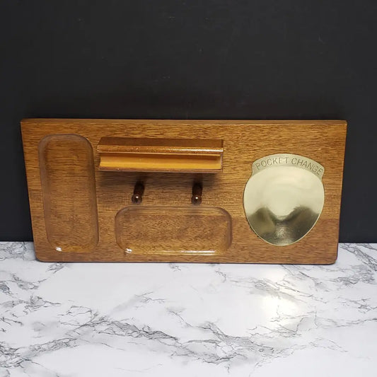 Men's Wood Dresser Valet with Brass Pocket Change Vintage