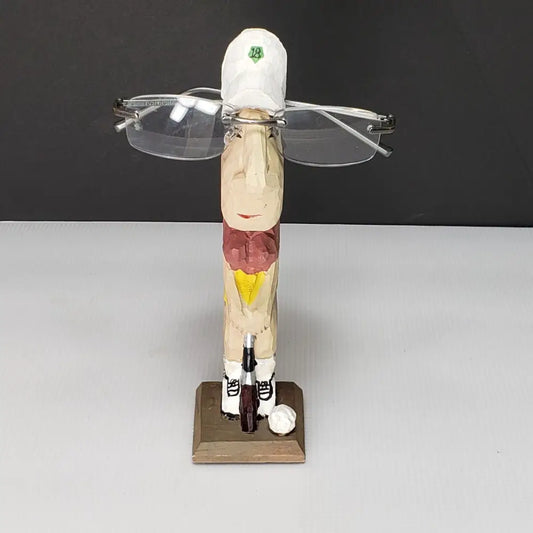 Golfer Eyeglass Holder Peepers Hand Carved Wood