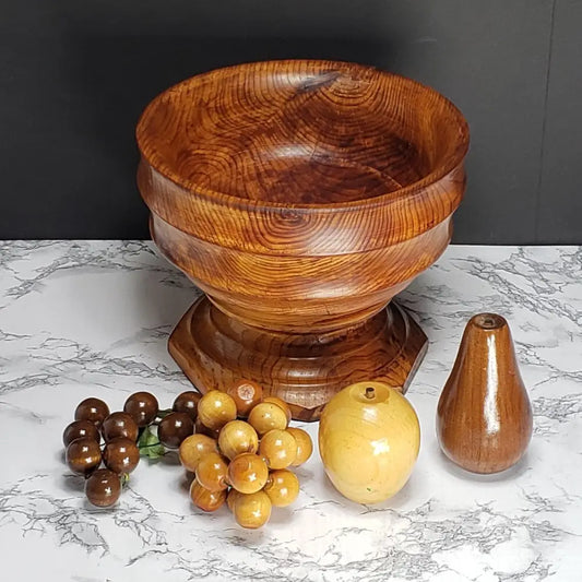 Handmade Wood Pedestal Bowl with Fruit Vintage